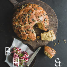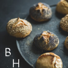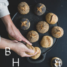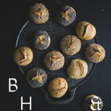 Dark and moody food photography series about baking with sourdough including bread and rolls.